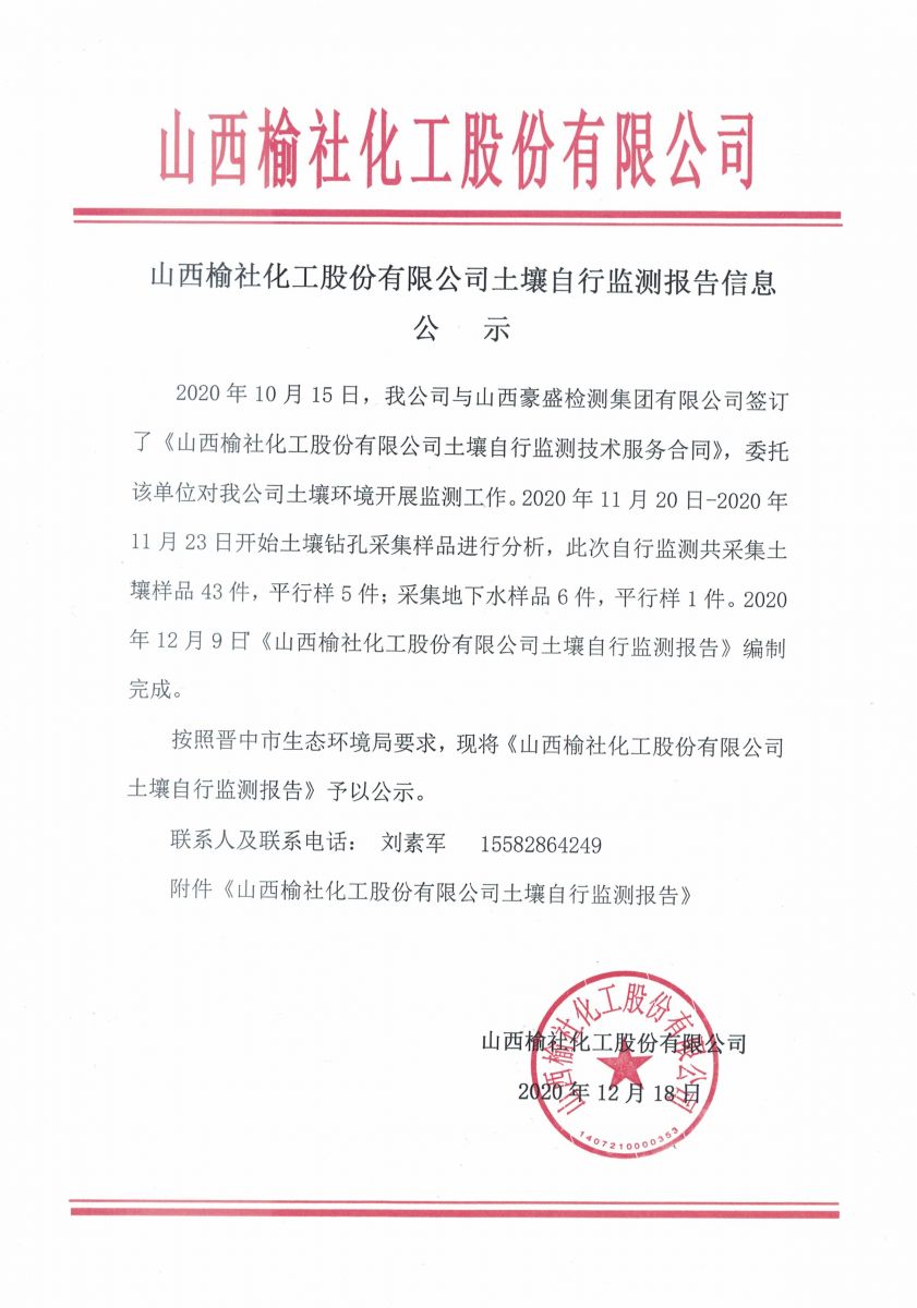 山西榆社化工股份有限公司土壤自行监测报告����� �������Ƴ������������ �������Ƴ������������ �������Ƴ������������ �������Ƴ�������信息公示
