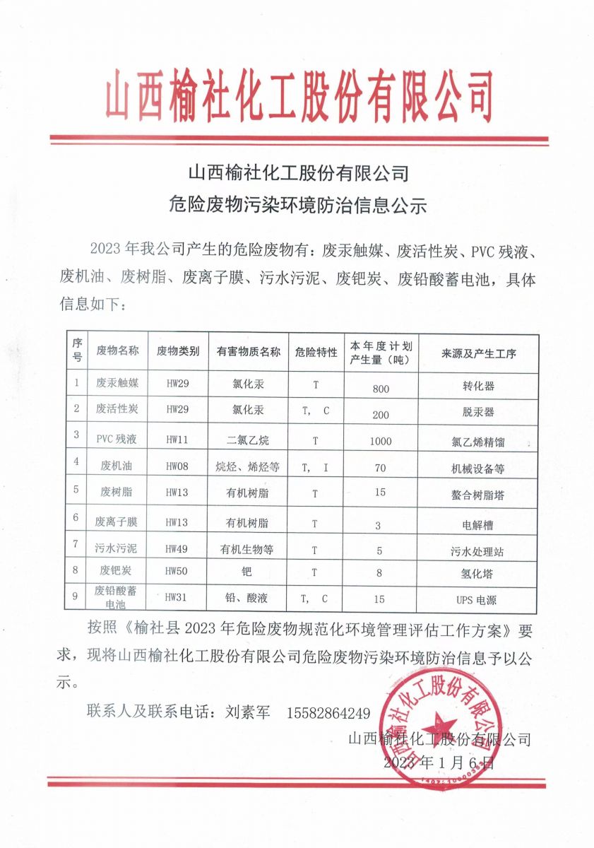 危险废物污染环境防治信息公示